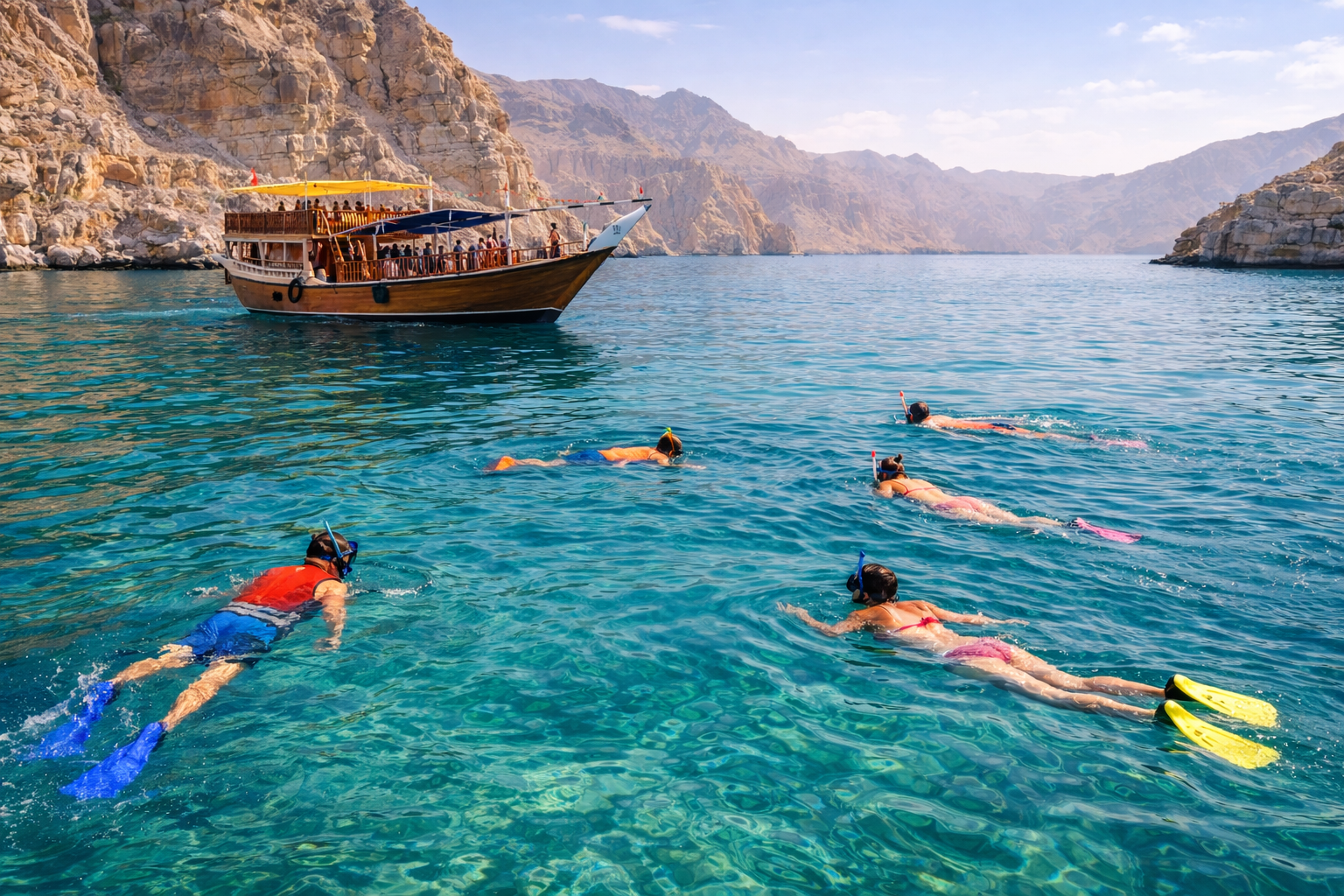 With refreshments served onboard and snorkeling gear provided, this cruise is the perfect short escape into Musandam’s natural beauty.
